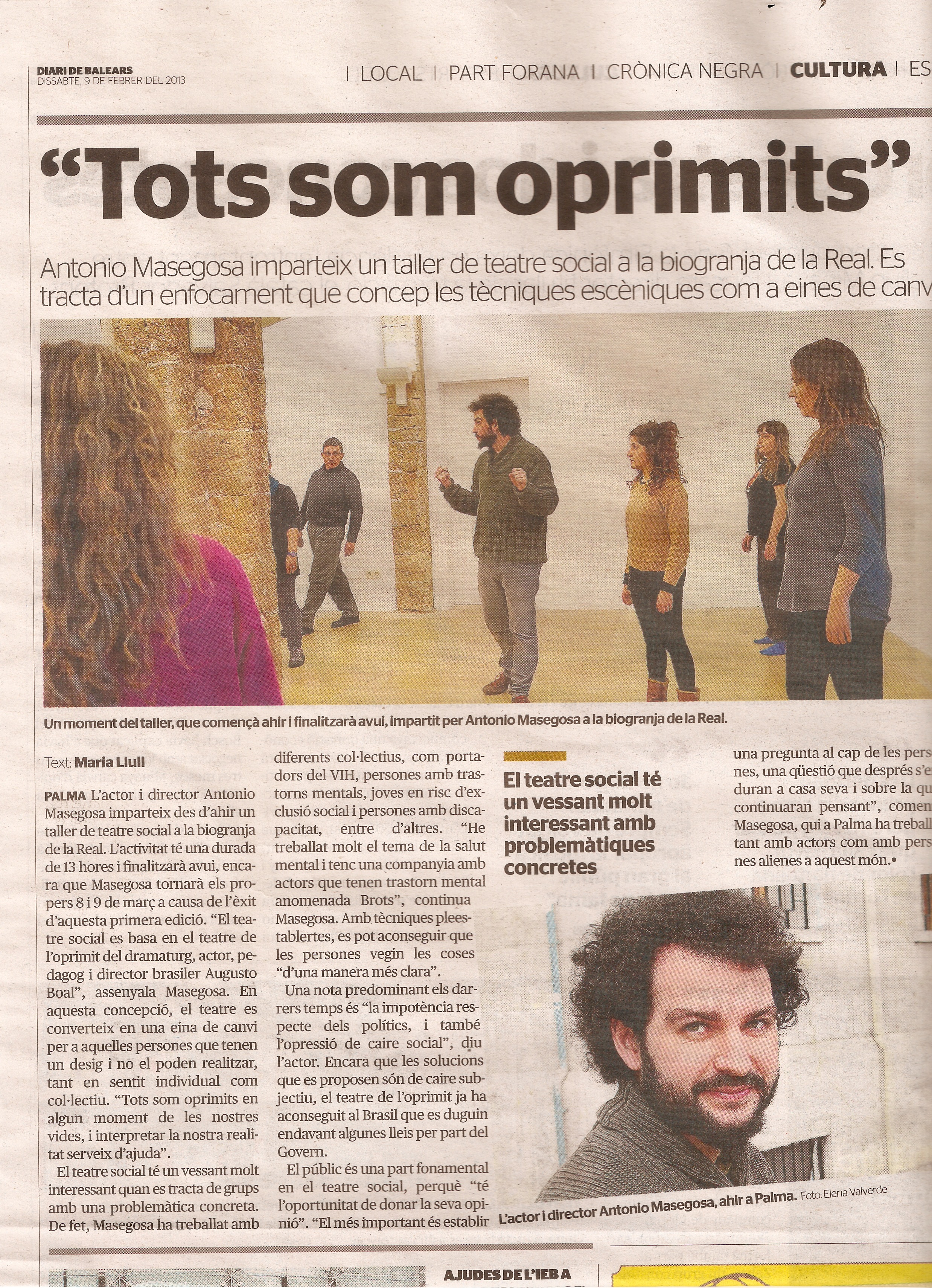 De la mano de Antonio Masegosa he podido vivir un taller introductorio al Teatro del Oprimido, dándome respuestas a estas preguntas.