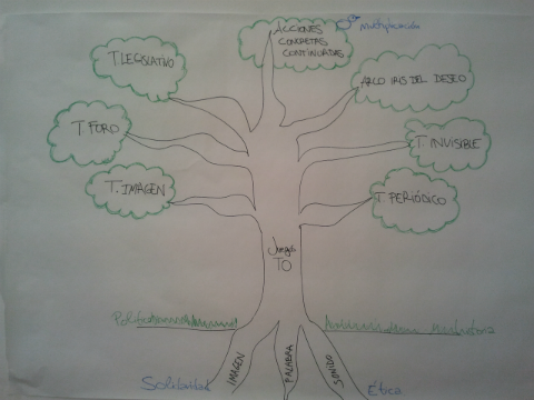 El tronco de este árbol incluye la gran variedad de juegos que conducen a poder entrar de manera dinámica y divertida dentro de la filosofía del oprimido. Y en las raíces de este árbol encontramos la estética del oprimido dónde todas las representaciones teatrales están compuestas por imagen, sonido y  palabra.